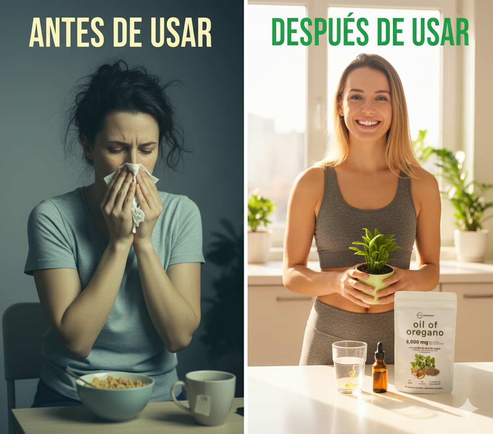 Las vitaminas fortalecen; el Aceite de Orégano actúa directamente limpiando y combatiendo patógenos. Es un refuerzo de "primera línea" que complementa tus vitaminas.